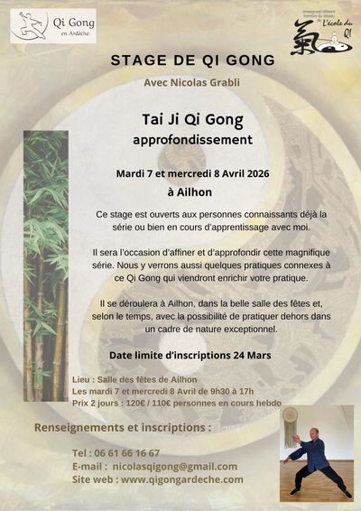 J'ai créé l'association Qi Gong en Ardèche en 2018 afin d'enseigner cette pratique pour laquelle je me passionne. Je me suis formé au Qi Gong de la lignée Yang Sheng (nourrir la vie ou le principe vital) à l'Ecole du Qi et suis issu du monde des arts martiaux chinois et des arts énergétiques de santé japonais.